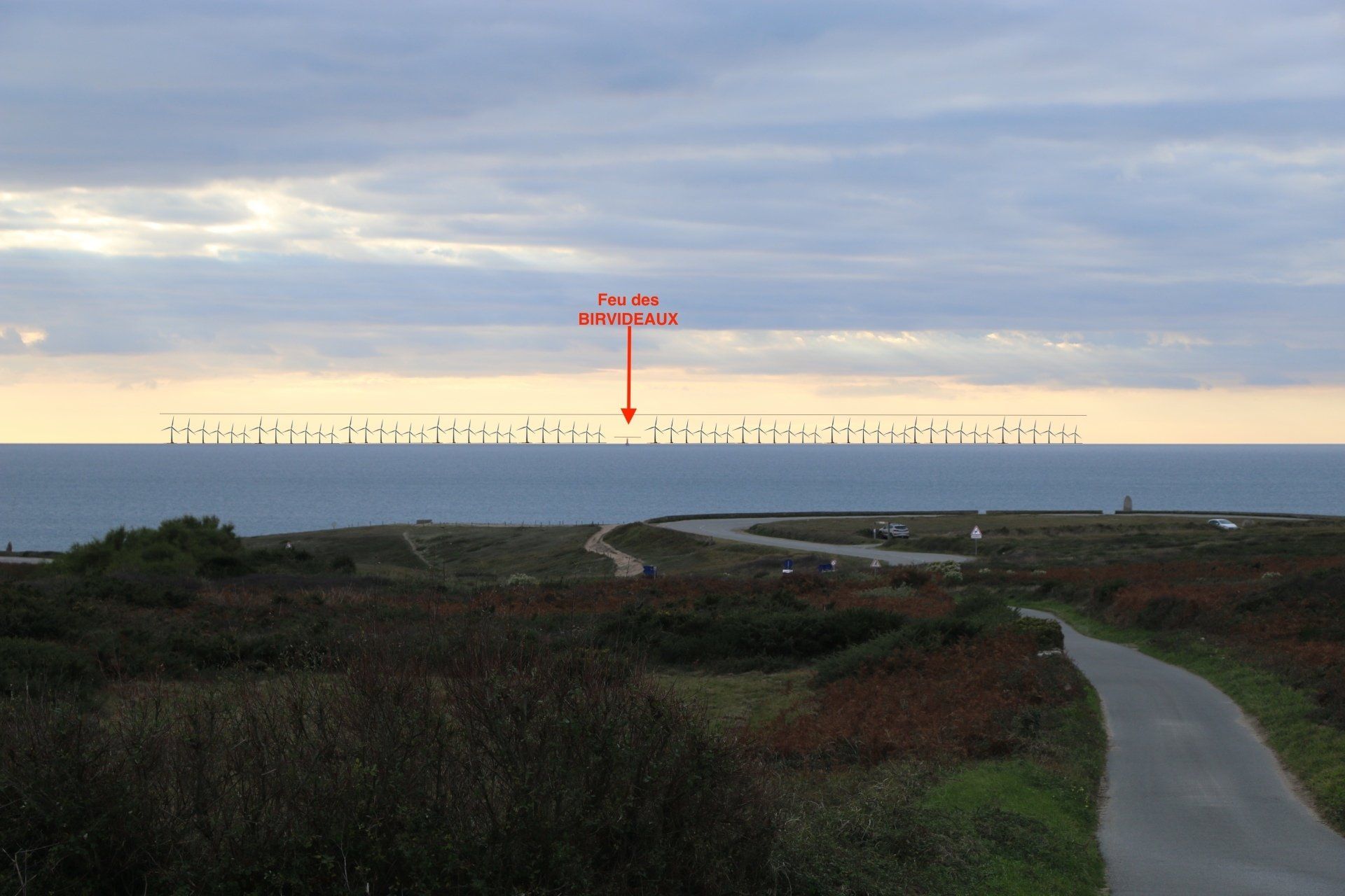 Hauteur relative des éoliennes au-dessus de la ligne d’horizon au niveau des Birvideaux : 77,2 m